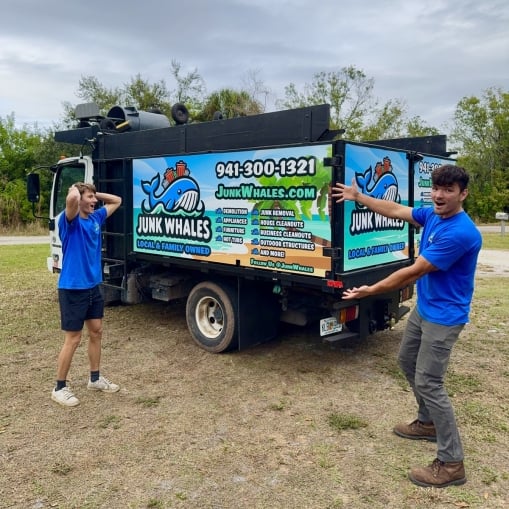 Junk Whales is a full-service junk removal company offering prompt, professional, and reliable removal of your junk, trash, or unwanted items from your home or business. We are a locally owned Sarasota County crew that operates 7 days a week, year-round. Our uniformed junk removal experts can handle any size job, whether it's a single item pickup or an entire property cleanout. We work rain or shine, so call us anytime.